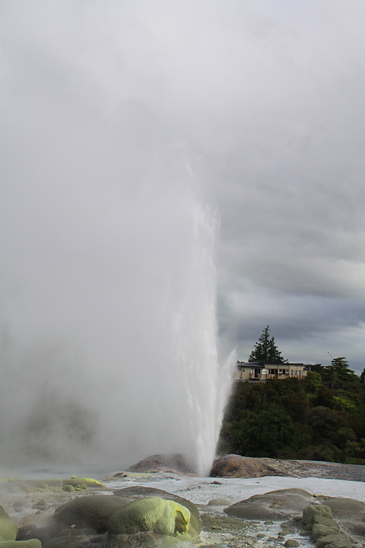 Гейзер называется Похуту. Про него разное пишут — что он извергается каждые 20 минут, что он извергается 10–15 раз в день... Так вот — сложнее застать его в молчаливом состоянии. Он извергается почти все время, и довольно высоко и громко.