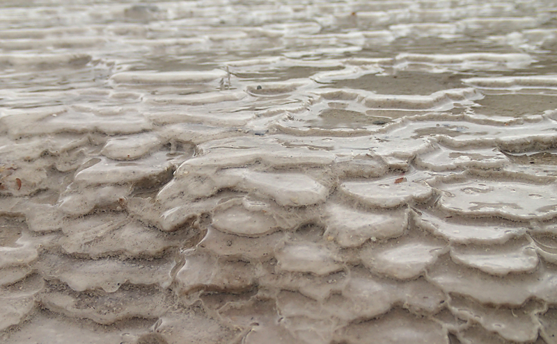 Желтая корочка на берегу - это сера. Наверное, дьяволу она вместо пудры.
