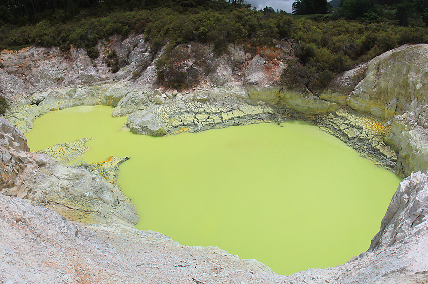Термальный парк Вайотапу находится в 30 километрах от Роторуа. Их сайт: http://www.waiotapu.co.nz/ Вход для взрослых 32,5NZD, для детей 11NZD. Гейзер Леди Нокс функционирует раз в день в 10.15 и находится не в самом парке, а рядом с ним, не доезжая до основной автостоянки.