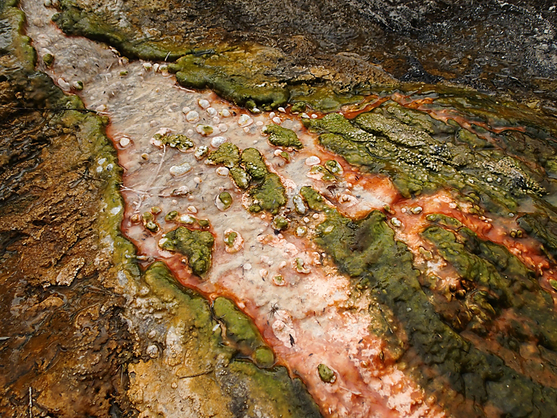 Зеленый цвет террасе придают водоросли. Существуют специальные водоросли, способные жить при температуре 80 градусов.