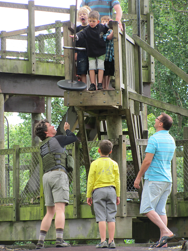 А это зип-лайн, достаточно длинный трос, на котором можно покататься. Сейчас очередь Тимы:
