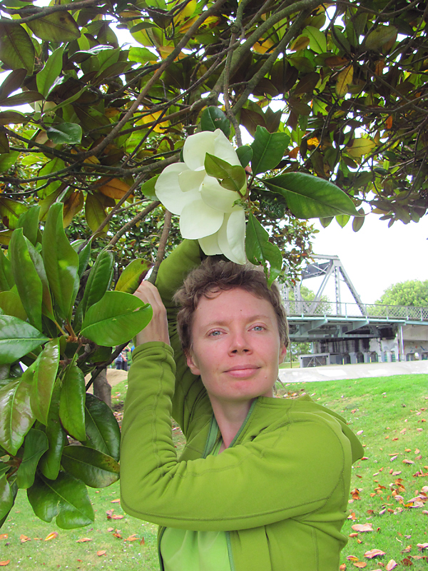 А еще удалось сделать снимок, на котором можно оценить размер цветка магнолии.