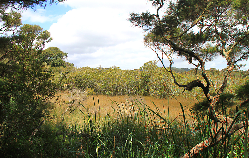Днем остановились возле водопада Харуру. Меня интересовала треккинговая тропа вдп.Харуру-Вайтанги, идущая частично по лесу, частично - по дощатому настилу в мангровых зарослях.