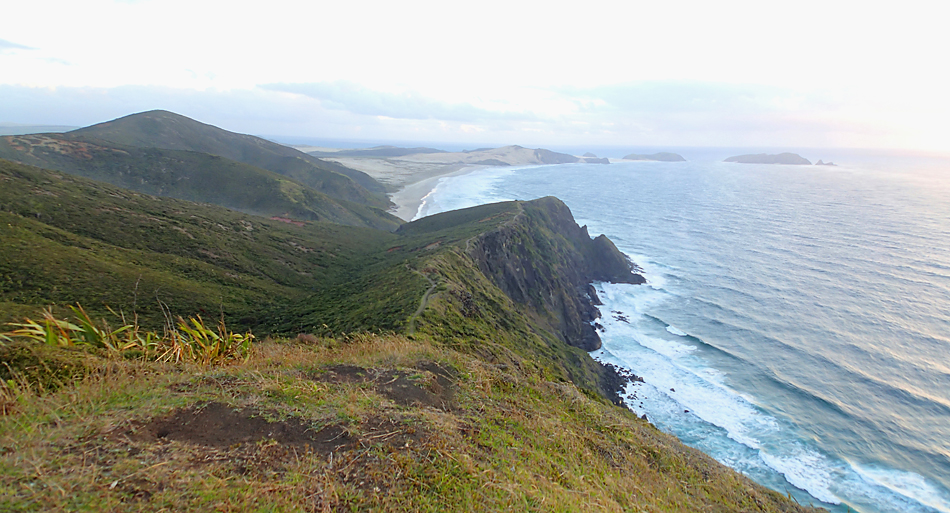 Но главное - место. Действительно ощущаешь себя на краю земли. Там, далеко-далеко на северо-западе есть материки. А тут встречаются Тихий океан и Тасманово море, и хочется просто сесть на пригорке и смотреть вдаль.