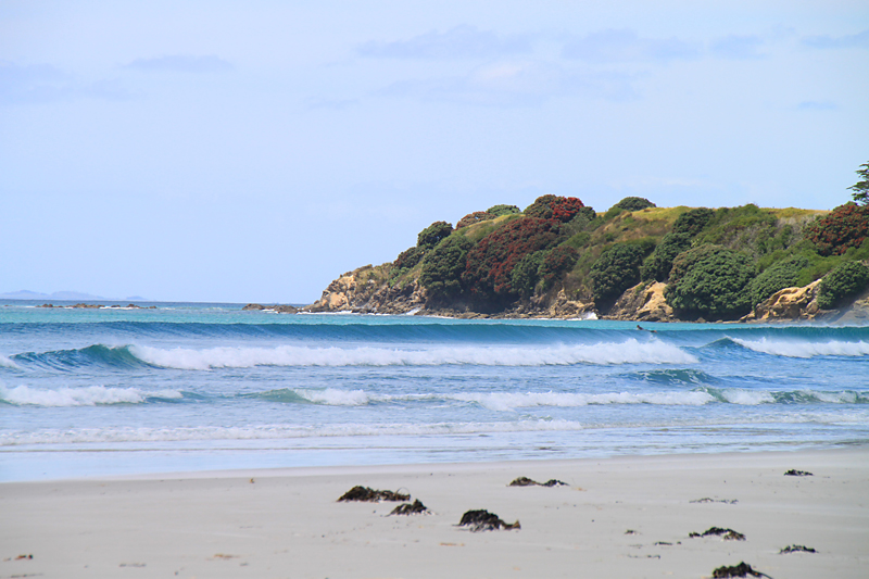 Опробовав все хорошие склоны и вдоволь нагулявшись, мы поехали на пляж Рарава, который славен своим белым песком. Пляж находится на восточном берегу полуострова Ауопри, тут Тихий Океан.
