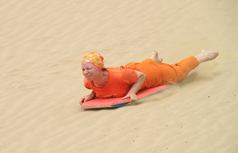 Вобщем, самые пассионарные взяли доски, а Фауст решил понаблюдать снизу, как мы барахтаемся. Кататься очень весело, подниматься на высокие дюны достаточно тяжело, отличный фитнес. Оно того стоит.