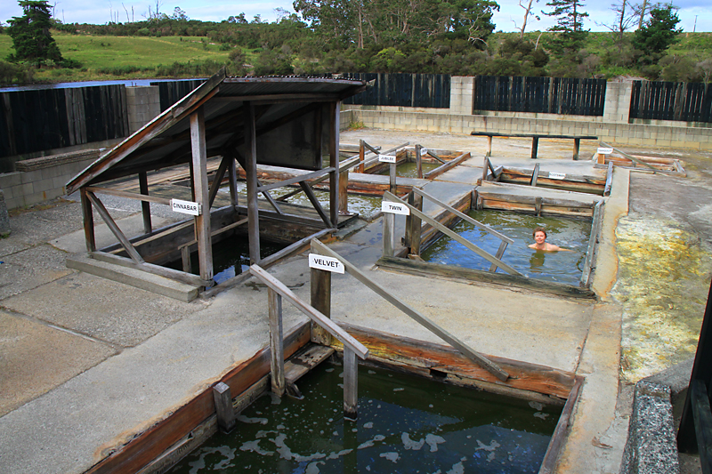 Вечером мы приехали в Кайкохе. Вычитали в путеводителе, что здесь есть малоизвестные горячие источники для умных и местных - Ngawha hot springs.