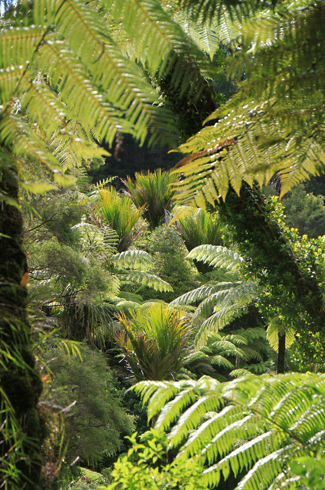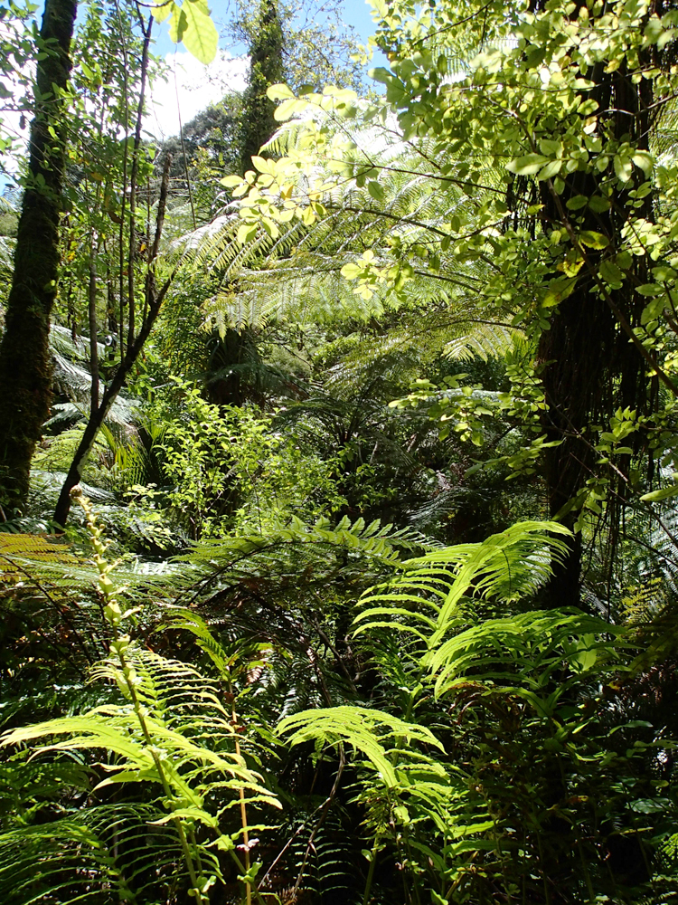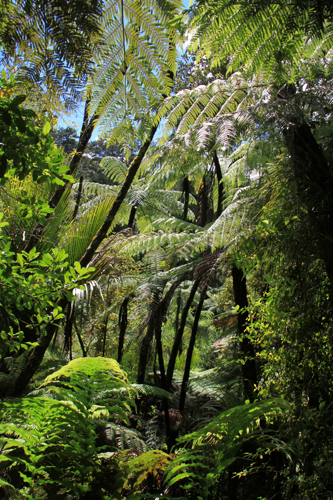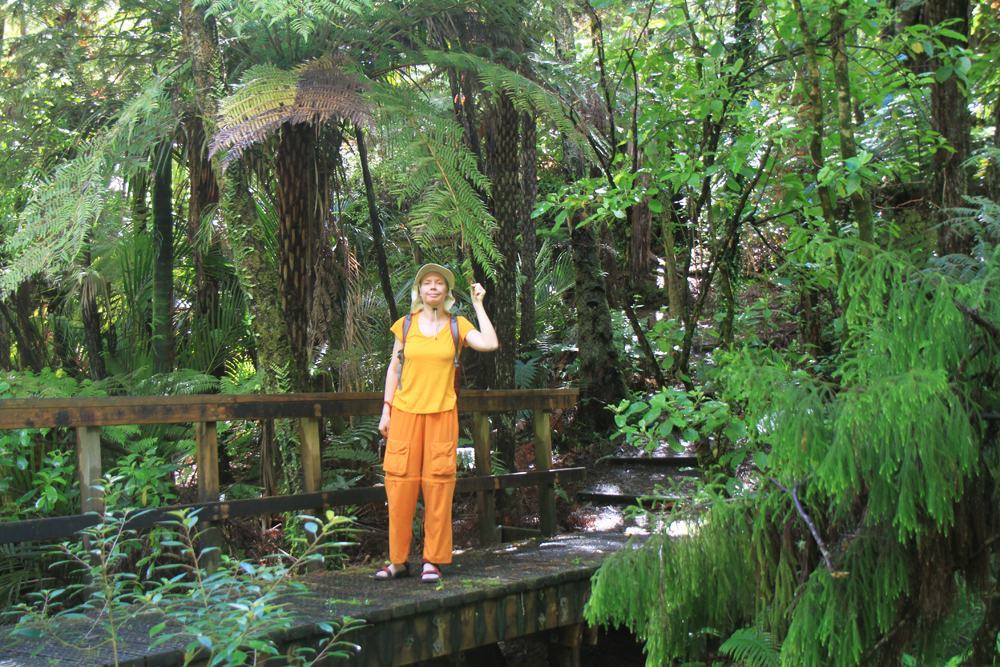 Как и во многих лесных парках Новой Зеландии, тут был простой короткий маршрут и длинный маршрут посложнее. Если простая прогулка на природе называется треккинг, то прогулка посложнее, без благоустроенной тропы, но с размеченным маршрутом, называется трампинг. Тут главное не путать — и время в пути, и снаряжение нужно очень разное, особенно обувь.
