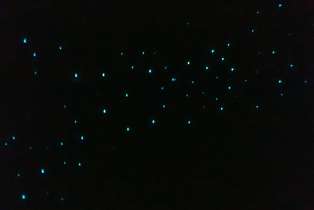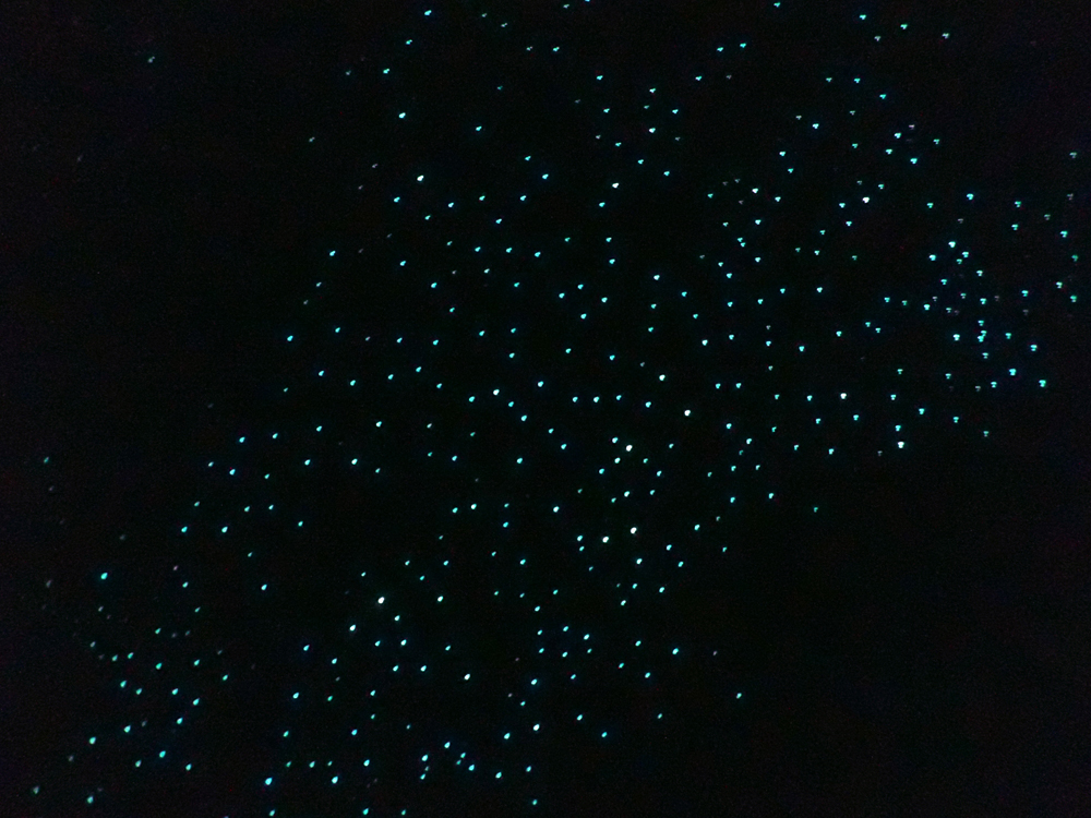 В месте самого большого скопления мы стояли долго. Постепенно стали видны тени: светлячков так много, что на воде появляется сияние, и виден силуэт двигающегося человека. Но глаза должны хорошо привыкнуть к темноте.