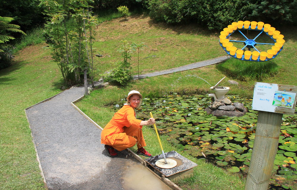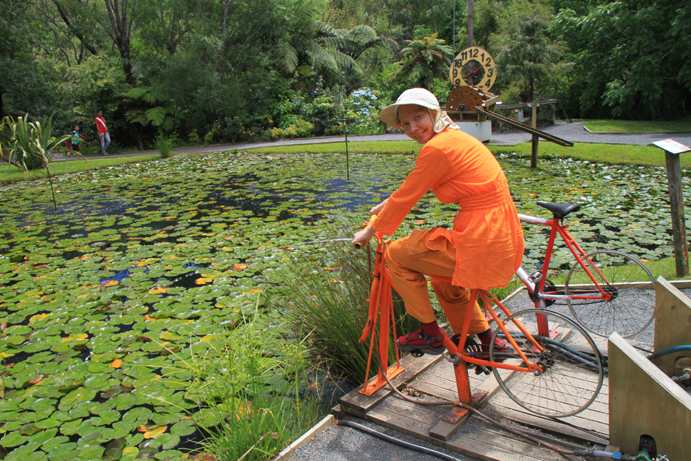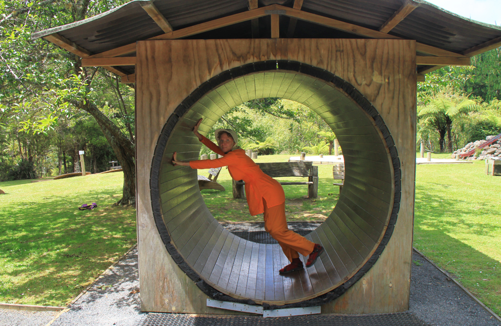 Неподалеку от пляжа с горячей водой есть забавный парк Waterworks со всякими смешными и занятными инсталляциями. Он не похож на музей, потому что все интерактивное. Не похож и на парк аттракционов, потому что адреналин тут ни при чем. Можно и нужно везде залезать, всё дергать за веревочку, кататься на всем доступном и всячески участвовать. Честно говоря, поначалу я стеснялась, очень непривычно. Потом разошлась.