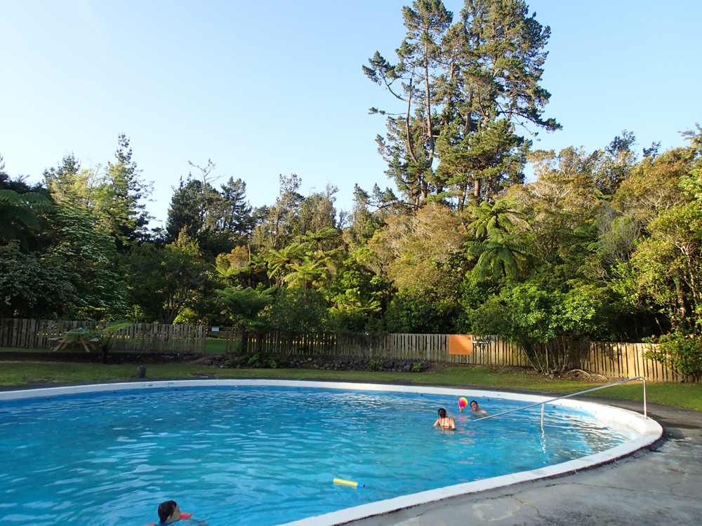 «Сапфир спрингс» — термальные бассейны и кемпинг в нескольких километрах от городка Катикати. Ночевка и купание вместе стоят 16.5 NZD с человека, открытые бассейны с водой около 32 градусов, вокруг красивые цветущие деревья.