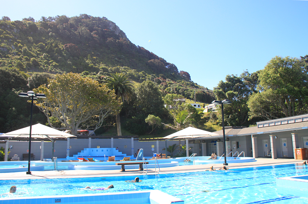 Цена за вход 10.80 NZD с человека, а если надо запирающийся ящик для ценных вещей, то еще 2 доллара. Есть три бассейна — один для активного плавания (около +34), другой «пассивный» +37–38, с гидромассажем, еще один детский. Отличное место, бассейны большие и просторные. Есть навесы от солнца.