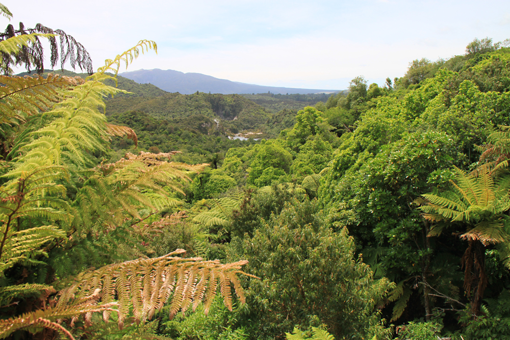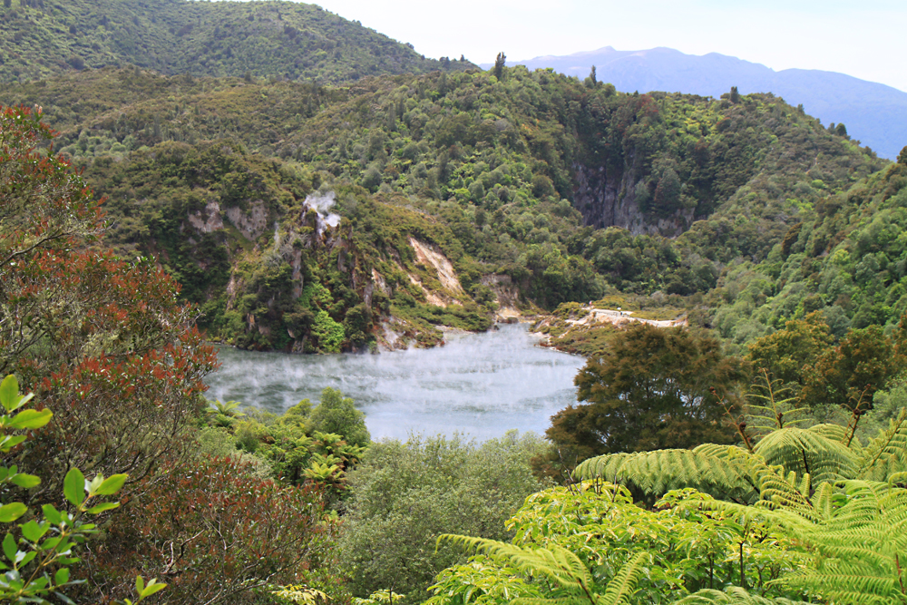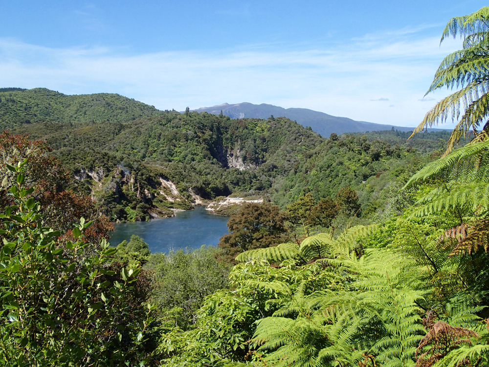 Вдалеке виднеется озеро Ротомахана, по которому мы в прошлый раз плавали на катере.