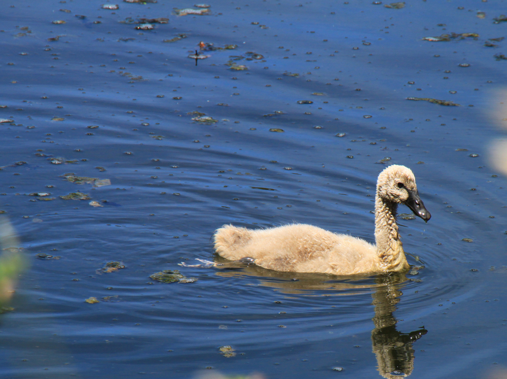 Видели лебедей и их птенцов.