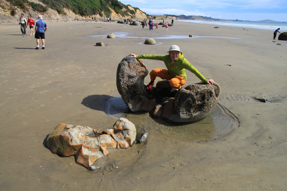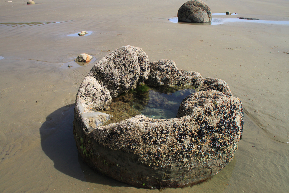 Поскольку ночевали мы рядом с круглыми драконьими яйцами по имени Моераки, то поутру зашли на пляж посмотреть — как они? Не вылупился ли кто-нибудь за прошедшие два года?