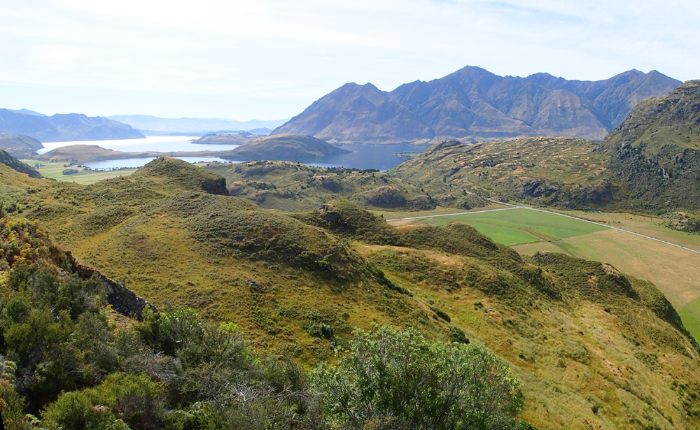 Когда идешь по верху, это уже Роки маунтин-трек, то видно озеро Ванака.