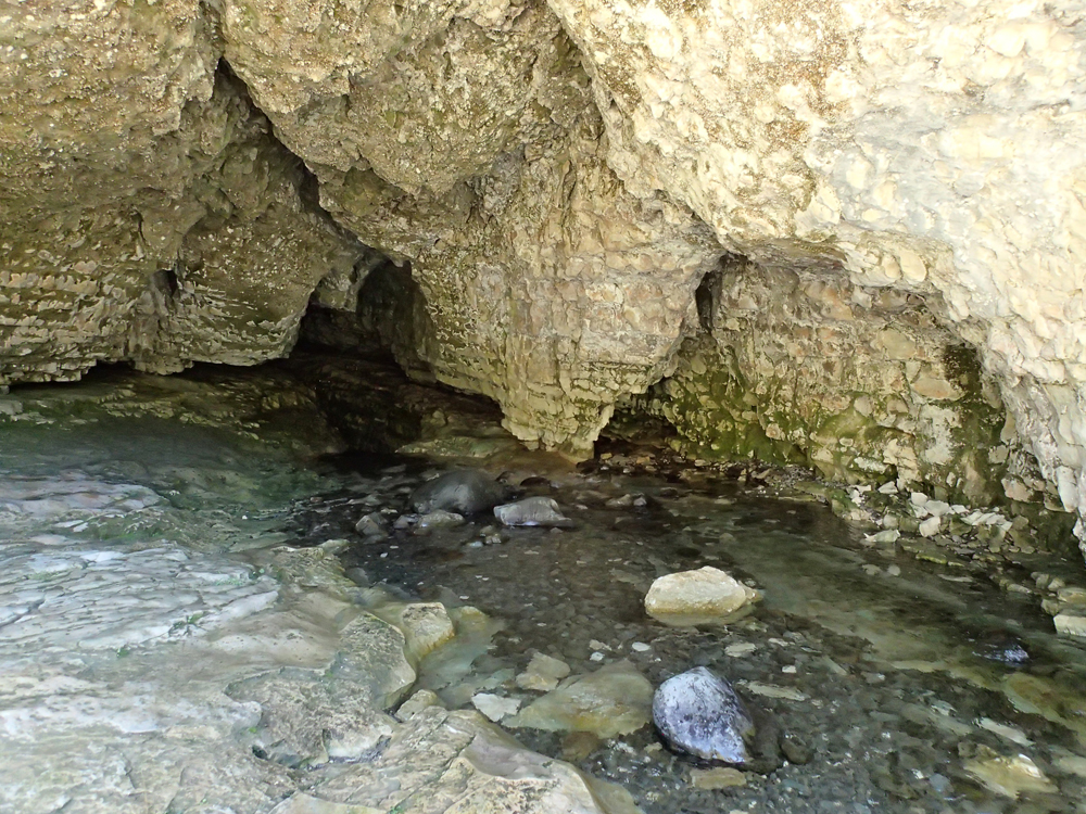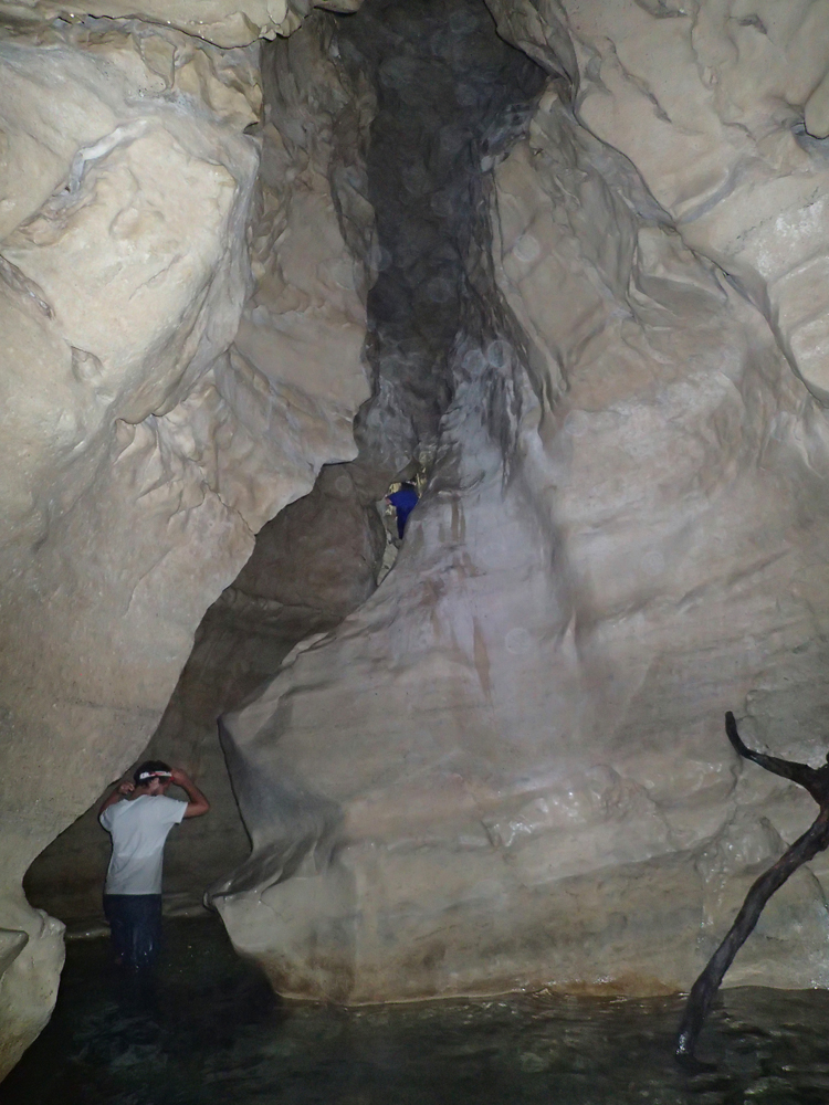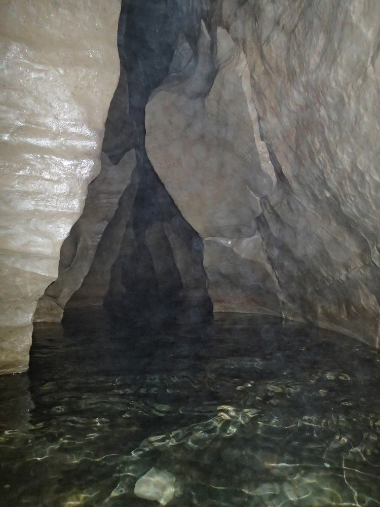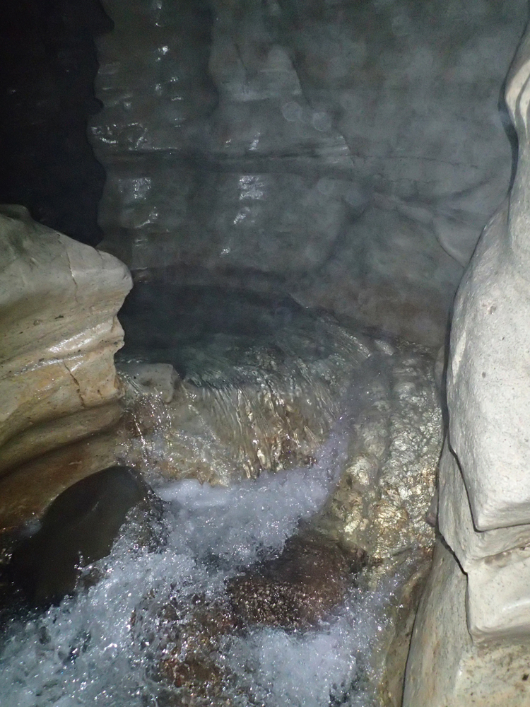 Вода промыла узкий и высокий проход, стены причудливо изогнуты.