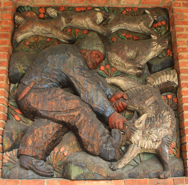 Неопознанный сюжет. Пыталась разглядеть подпись, что-то типа Vigan просматривается. Кто подрался с волками?