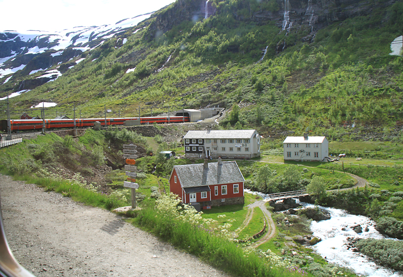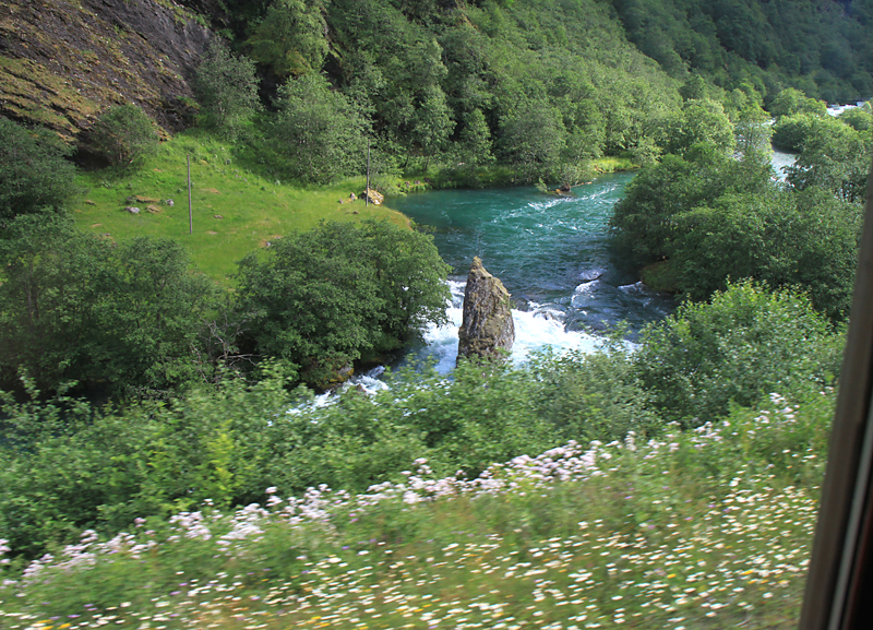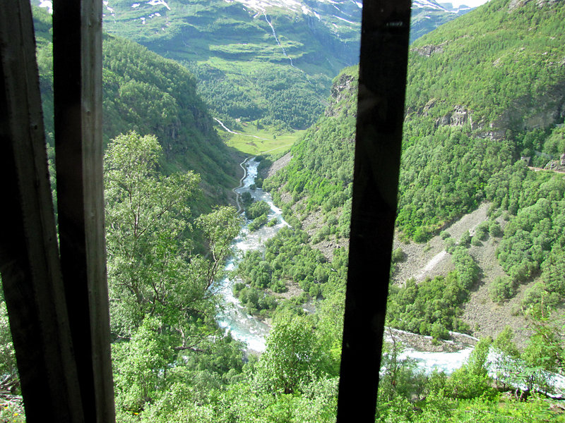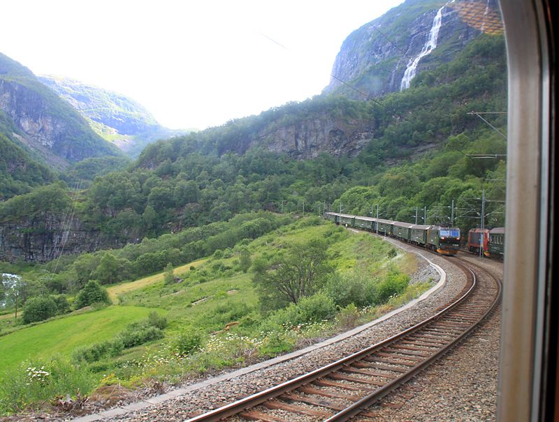 Поездка на норвежском поезде выглядит примерно так. Сперва пейзаж старательно прячется за деревьями. Потом неожиданно открывается картина необычайной красоты, ты восклицаешь "Ух..." и не успеваешь сказать "...ты!", потому что поезд ныряет в длинный туннель. Далее цикл повторяется много раз. О том, чтобы успеть поднять фотоаппарат, речи просто нет, даже разглядеть красоту иногда толком не удается.