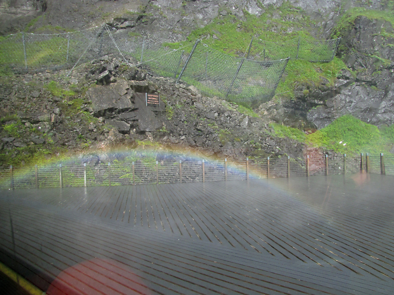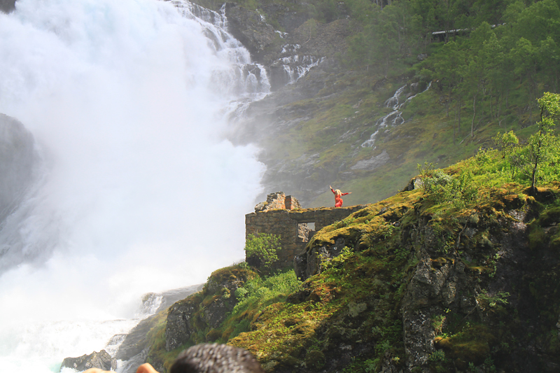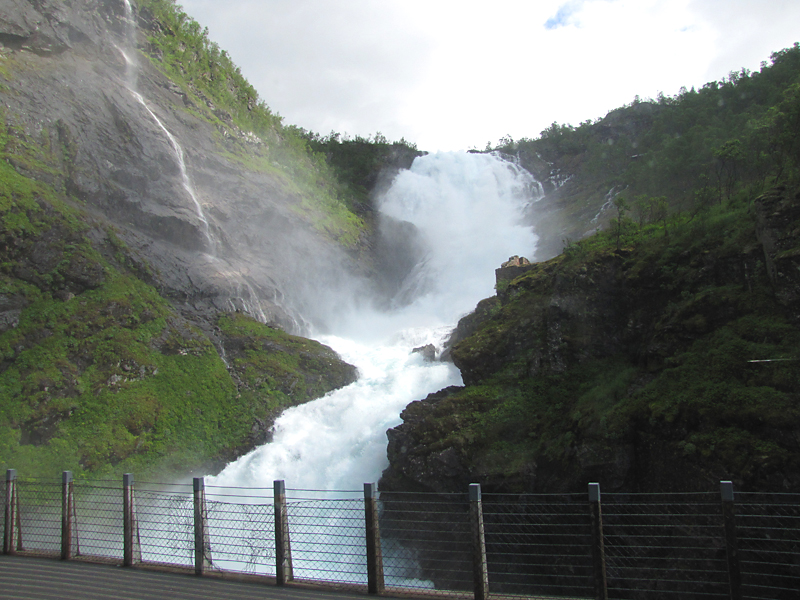 У водопада Кьосфоссен поезд останавливается и можно выйти на деревянный настил.