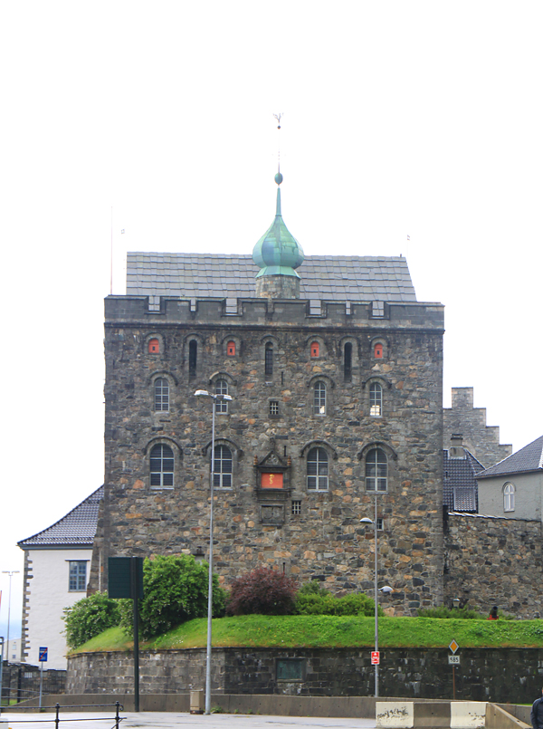 На брусчатой мостовой Бергена красуются вот такие фигурные люки. Тут и башня, и ряд домиков Бригген - всё что нужно изображено :-)