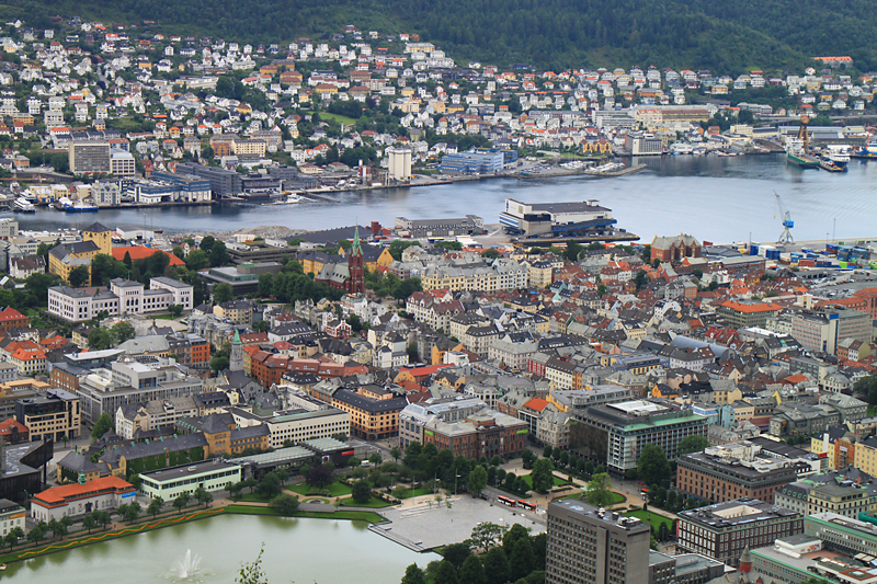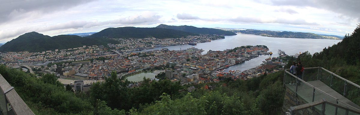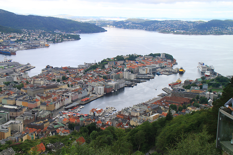 Прогулка началась с фуникулера Флёйбанен, который поднял нас наверх на гору. Оттуда мы смогли полюбоваться городом.