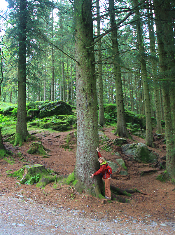 Вниз мы пошли пешком, тропа проложена по лесопарку. Это северный дождевой лес, не иначе - деревья какого-то гигантского размера. В средней полосе таких ёлок не бывает.
