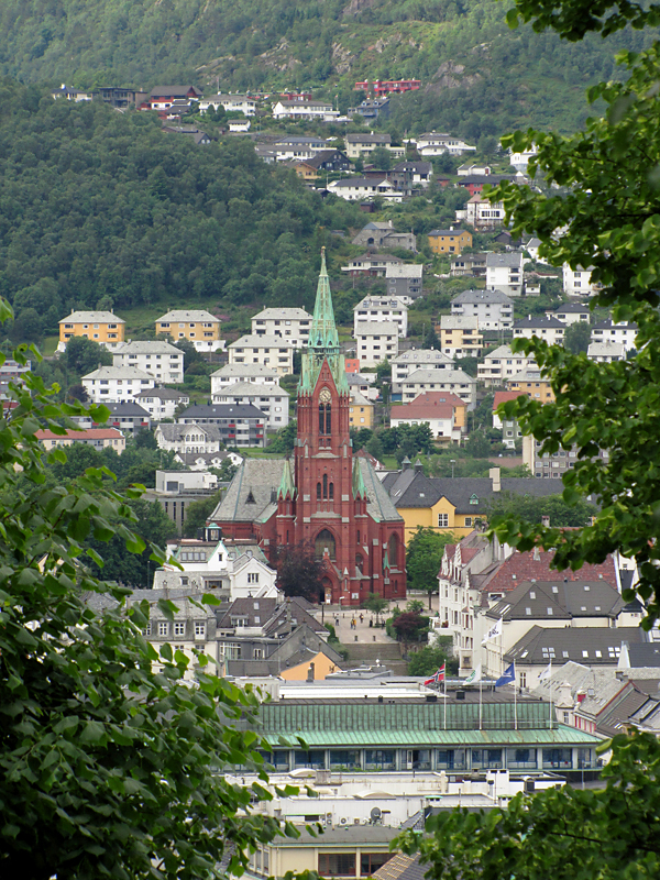 После обеда и некоторого отдыха я немного пришла в себя и вечером мы съездили в Фантот посмотреть на деревянную церковь. Это район на окраине Бергена, от автостанции можно добраться на трамвае.