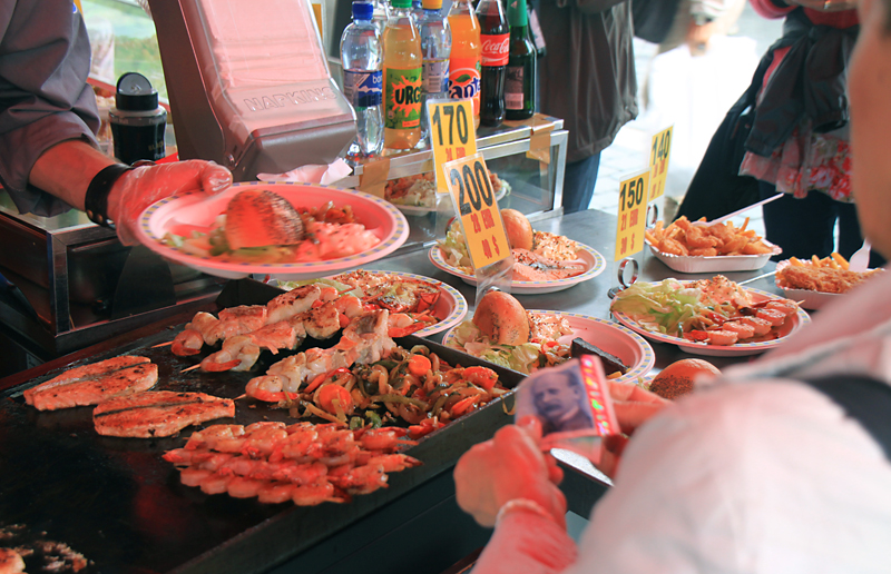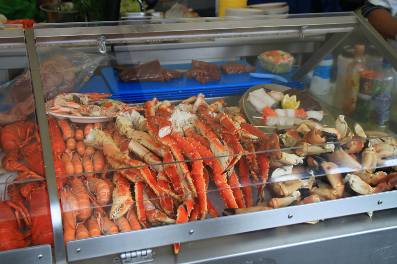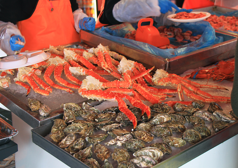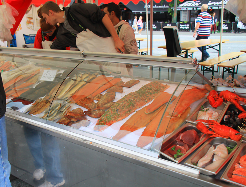 Сёмга - обычная малосольная сёмга, которую тут же ловят, стоит на этом рынке 400 крон (2000 рублей) за кило. В супермаркете за углом можно купить в два раза дешевле.