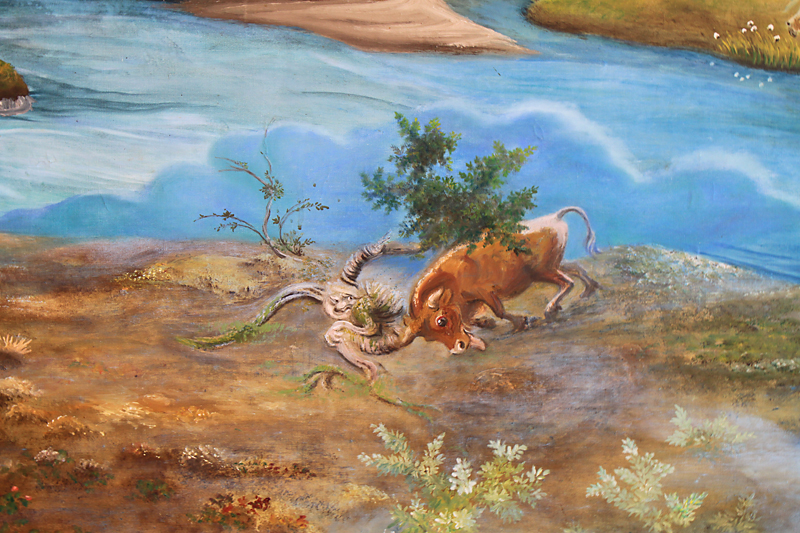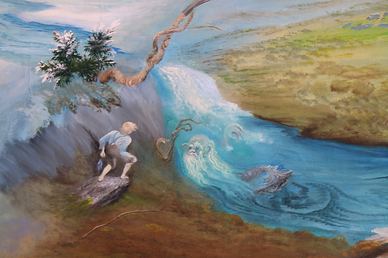 На дальней стене висела картина, рассказывающая о жизни в этой местности и о тех, кто здесь когда-то жил.