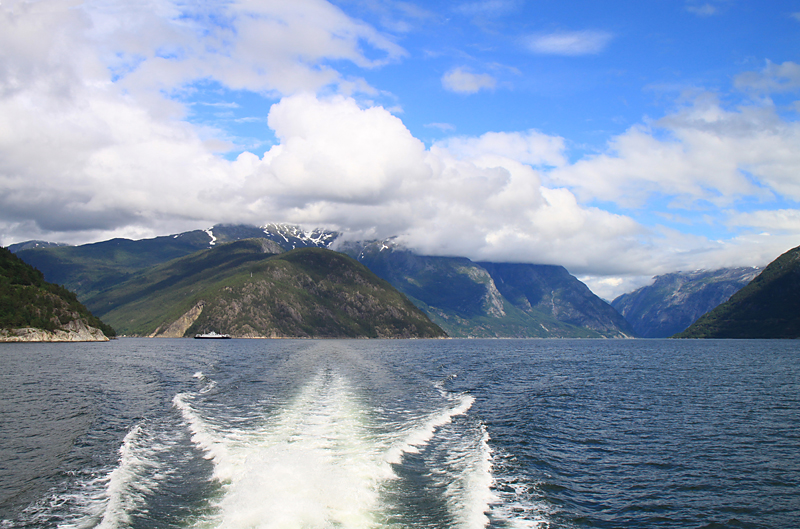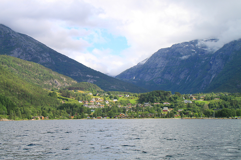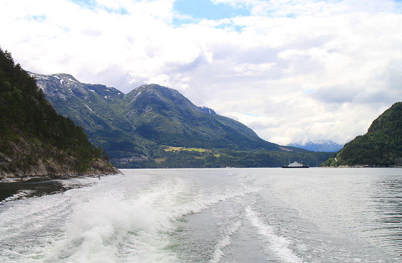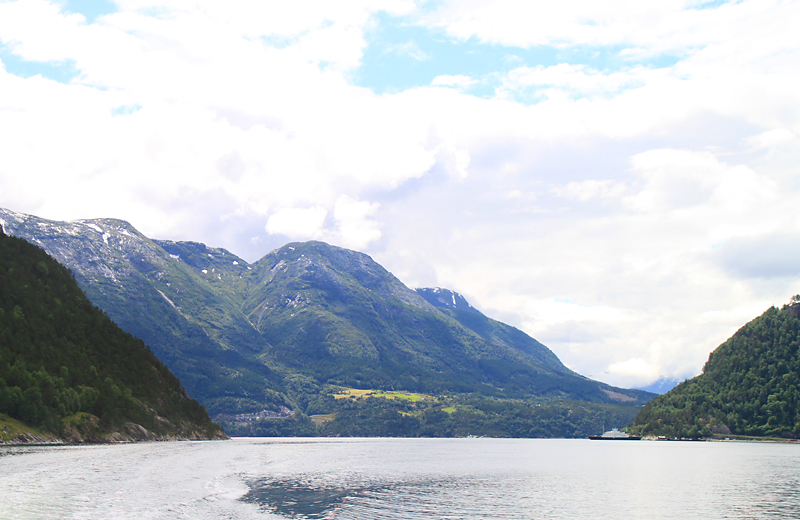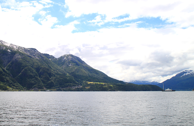 Итак, чтобы вернуться из нацпарка Хардангервидды, надо немного проехать на автобусе до Эйдфьорда, а там пересесть на туристический паром. Он отвез нас в Норхеймсунд.