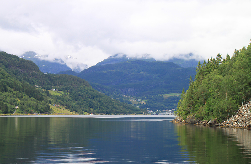 Кое-где облака все равно заслоняют верхушки фьорда.