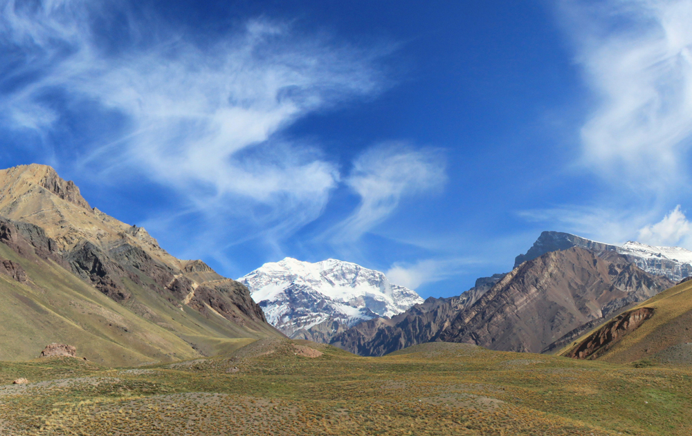 Аргентина. Высочайшая вершина Южной Америки, пик Аконкагуа (6960 м).