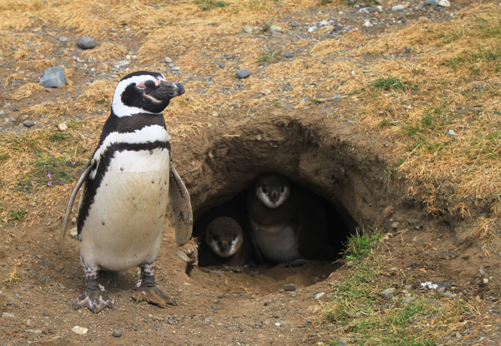 Пингвинов мы поехали смотреть на остров Магдалена. Там национальный парк и можно ходить по дорожкам совсем рядом с сотнями пингвинов. Пингвины гнездятся в норах, выводят и воспитывают птенцов, живут бурной жизнью и на людей не обращают внимания.