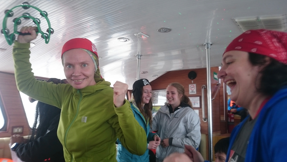 На обратном пути капитан раздал пассажирам игрушечное оружие и звенелки и мы устроили веселые латиноамериканские пляски в антураже. Чем мы хуже пингвинов? :-)