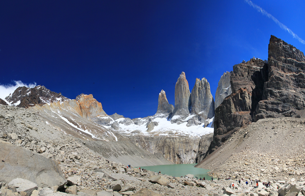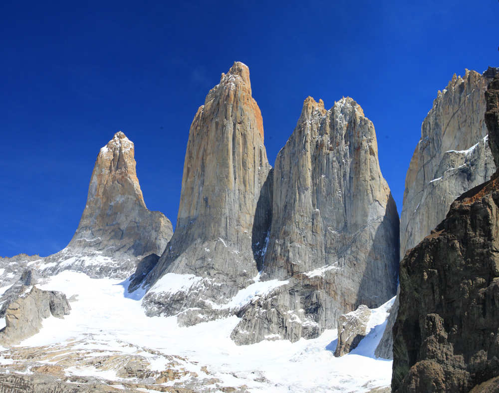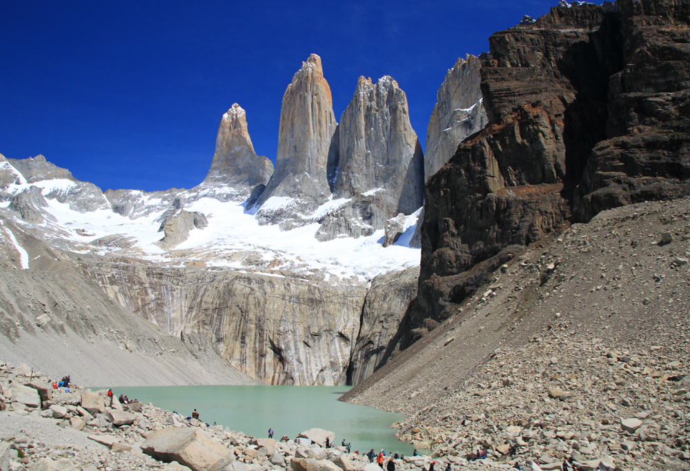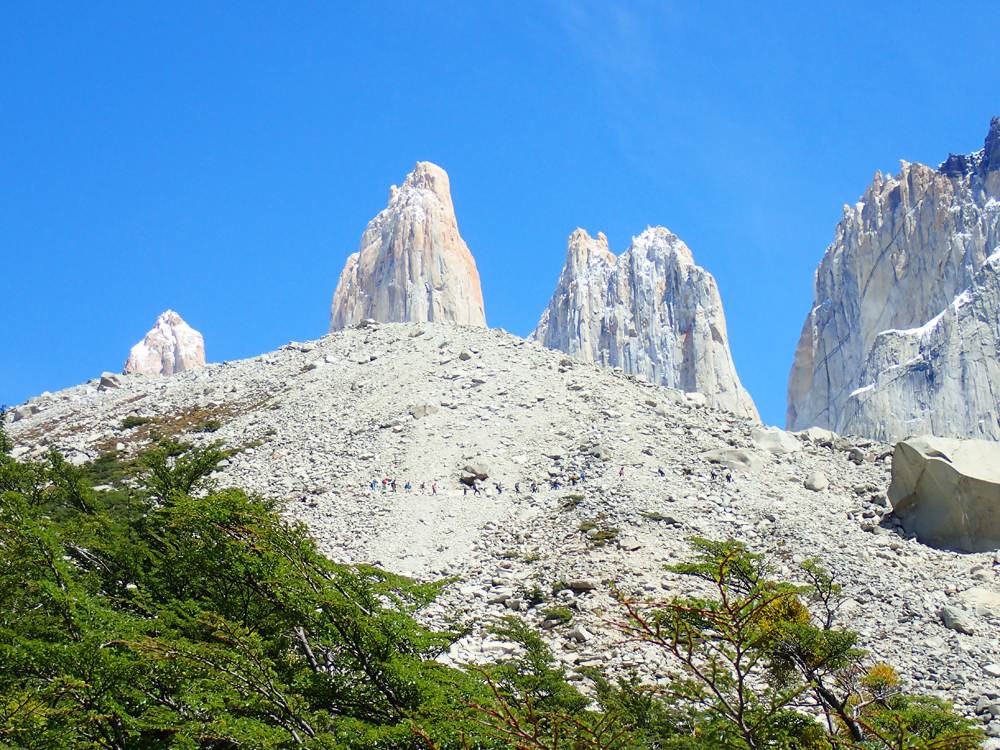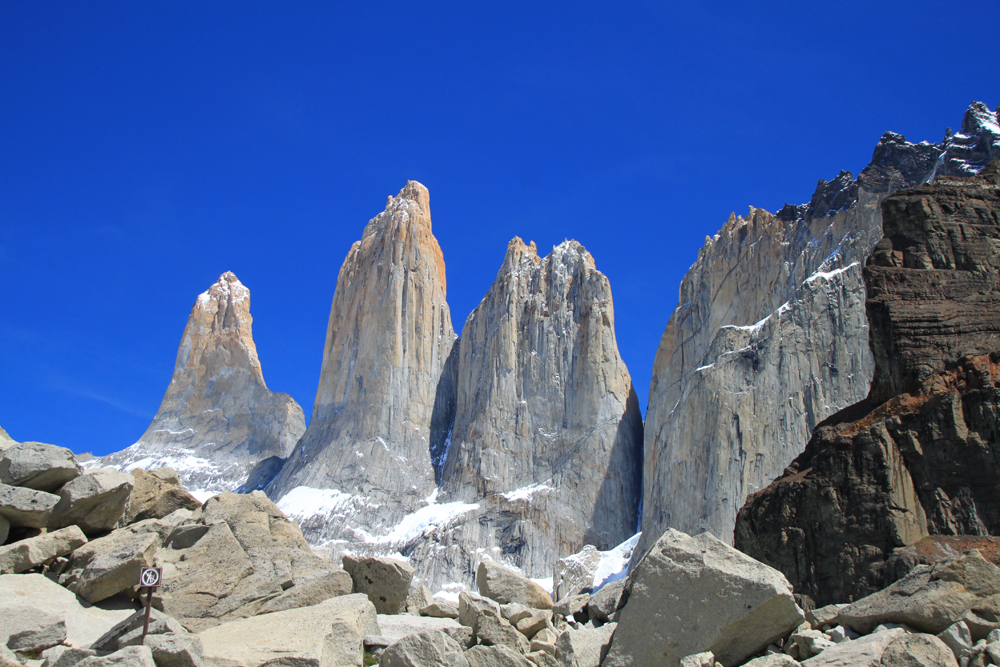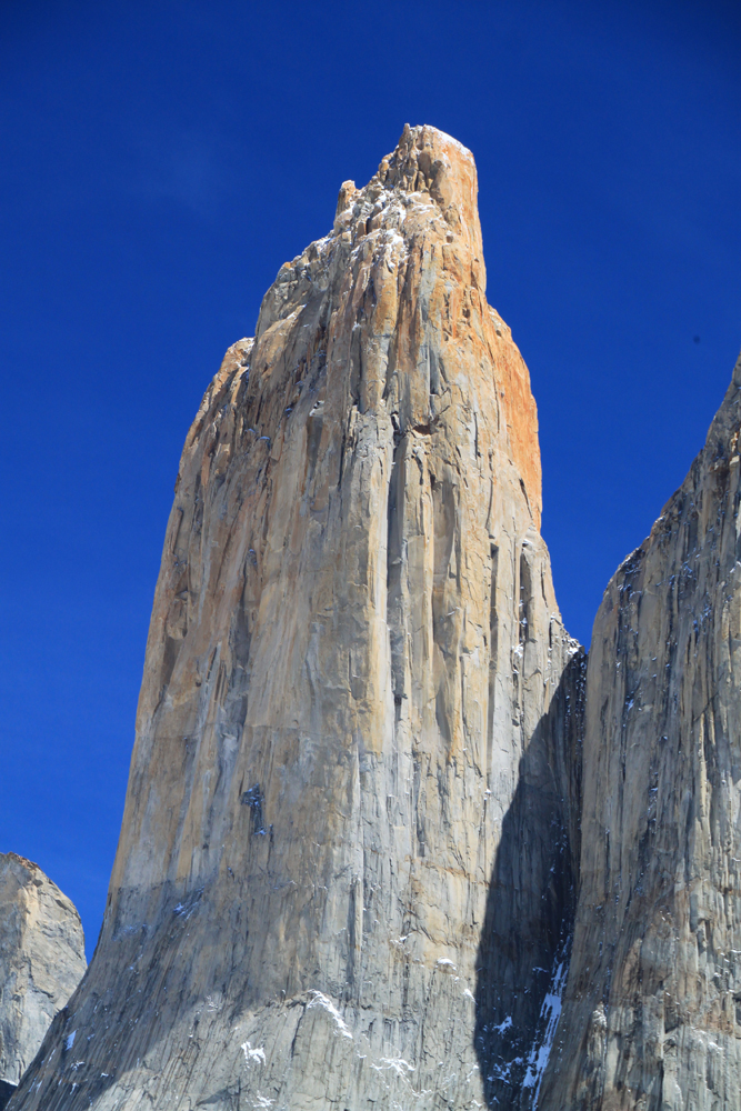 Высота башен от 2600 до 2850, на языке мапуче «пайне» означает «голубой». Так что у них вот были голубые башни. А мне очень нравится, что сверху они отчетливо рыжие. Удивительно, но альпинисты на всех башнях уже были.