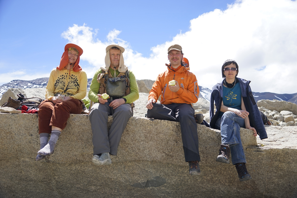 Утром мы встали в семь: позавтракали, собрали лагерь, загрузили вещи в машину и в 9:20 вышли. Ходили ровно 10 часов, включая часовой привал, регулярное фотографирование и сбор ягод. Всего туда-обратно около 20 км, подъем и спуск 700 метров.