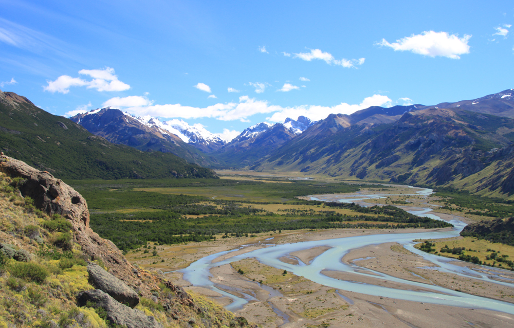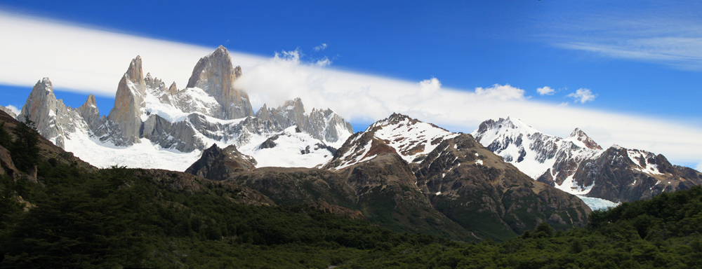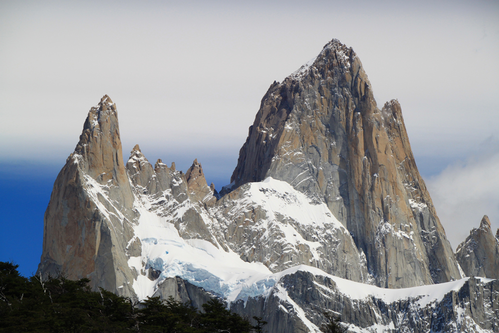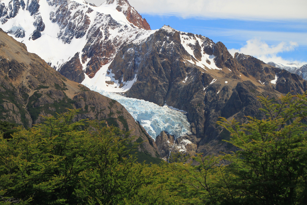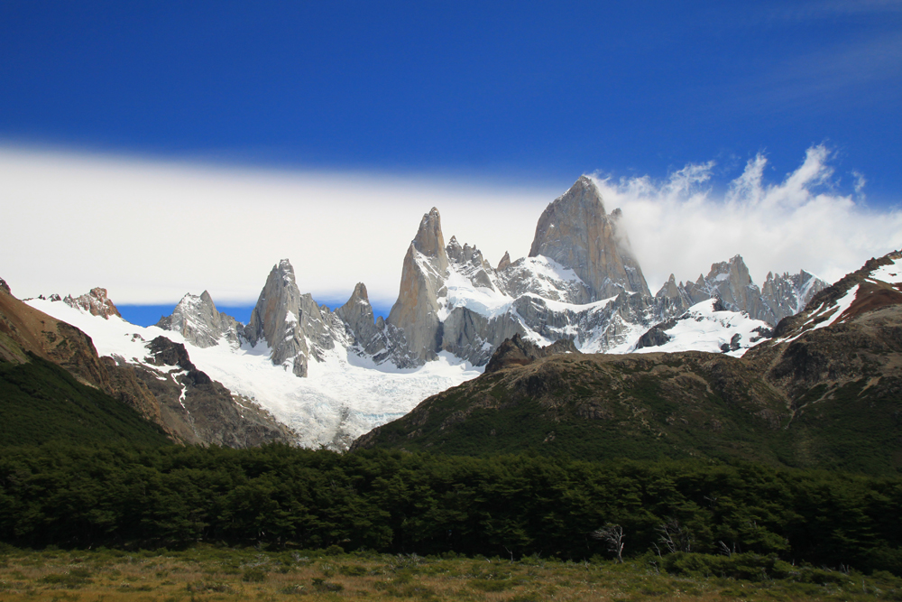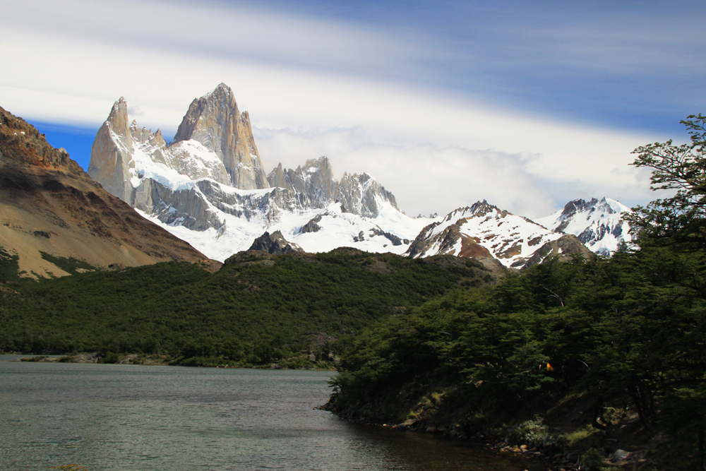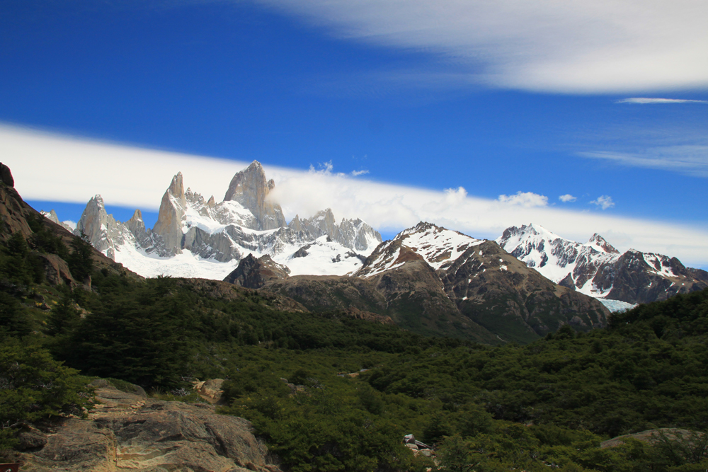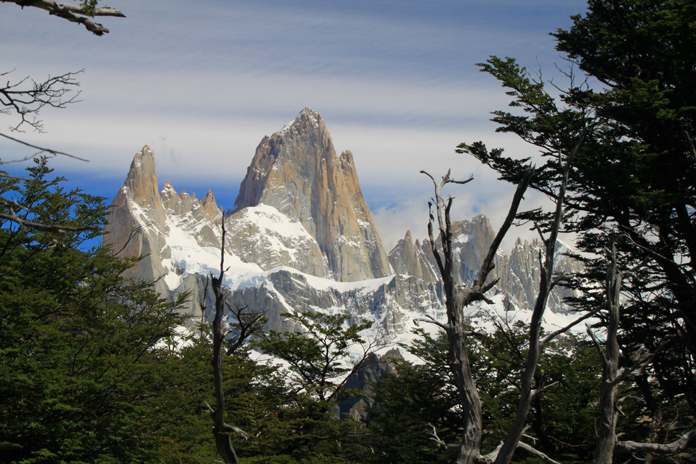 Вскоре за верхушками деревьев стал проглядывать Фиц Рой.