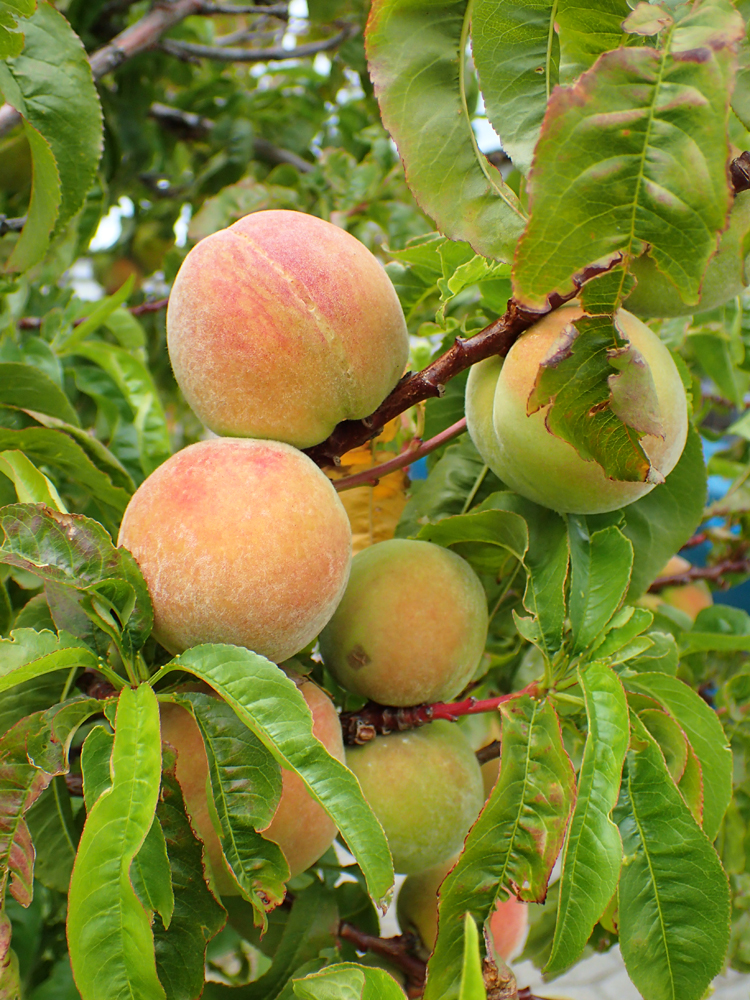 А пока нам латали колесо, мы фотографировали персики — еще зеленые, но уже привлекательные: