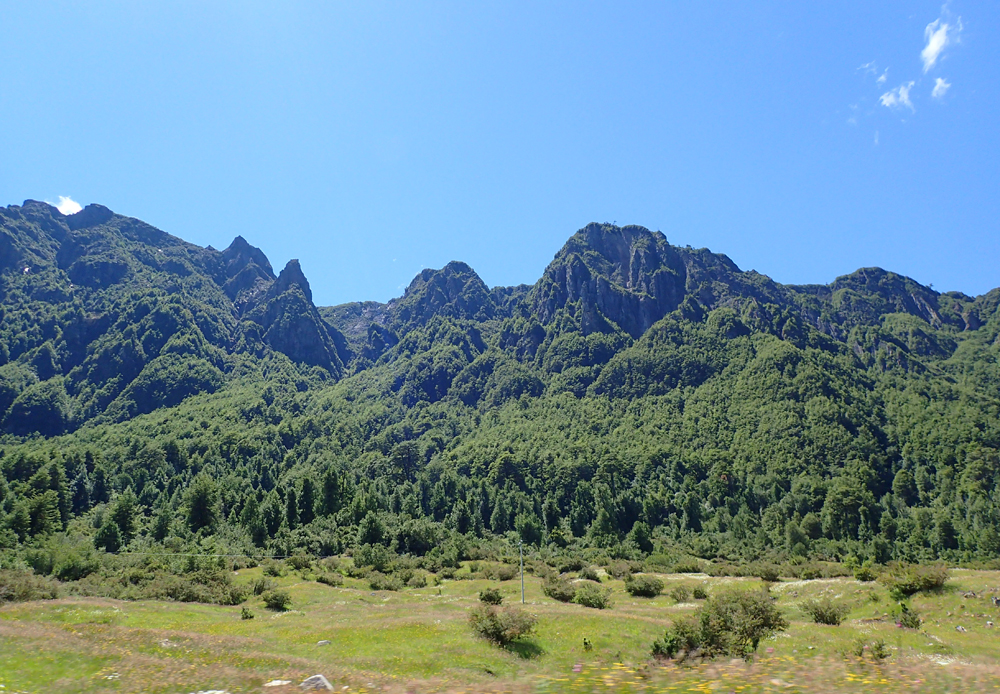 На следующий день мы увидели, что возле Серро Кастильо красивые горы, а хозяйка рассказала, что к ним есть прогулочные маршруты. Но мы вздохнули и поехали дальше. Ради разнообразия, на руте 7 первые 250 километров был асфальт, поэтому ехалось легко.