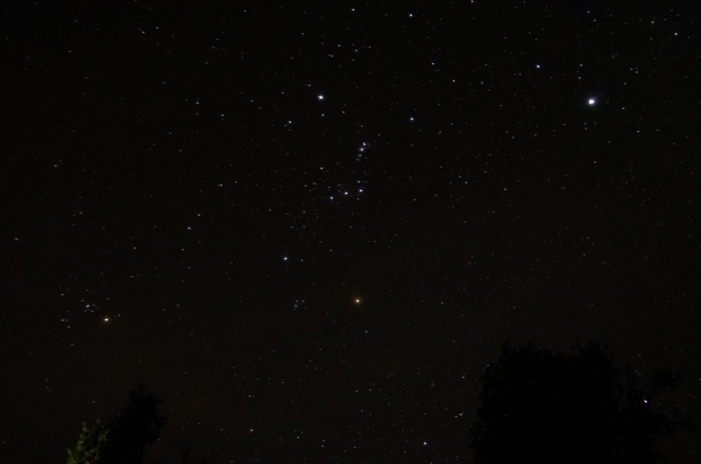 А потом Гален достал штатив и мы фотографировали небо. Вот тут у нас пояс Ориона.