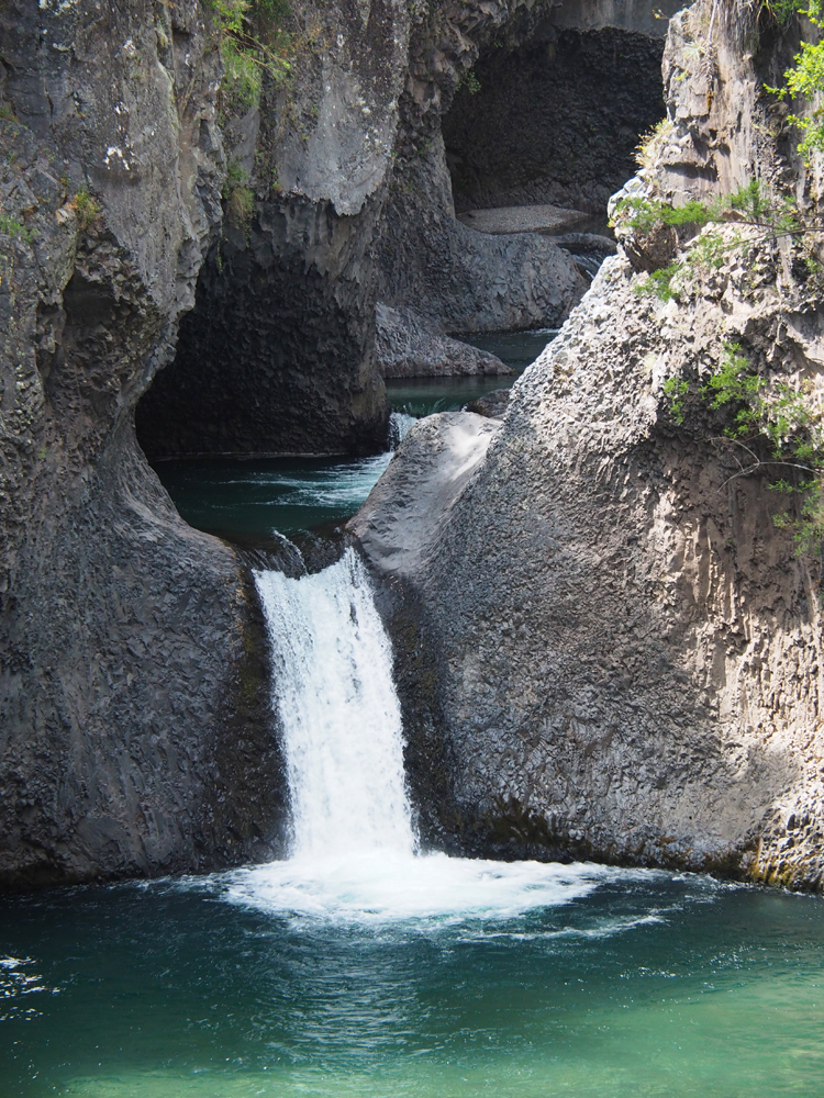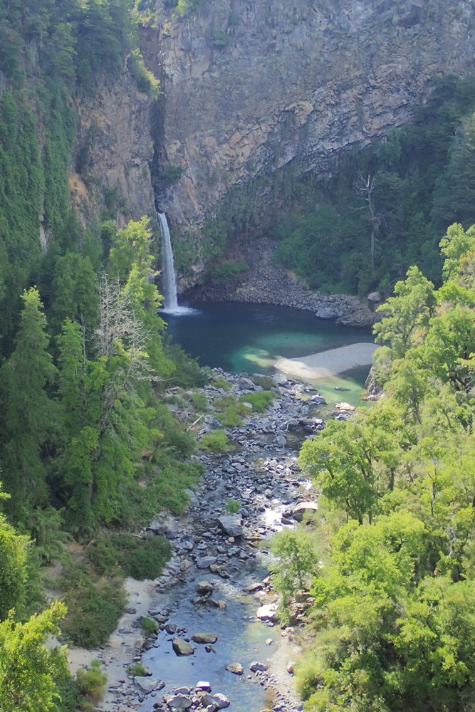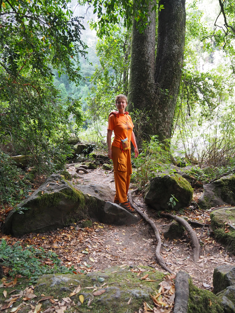 Спустившись по лестницам, мы пошли вверх вдоль русла до подножия водопада.