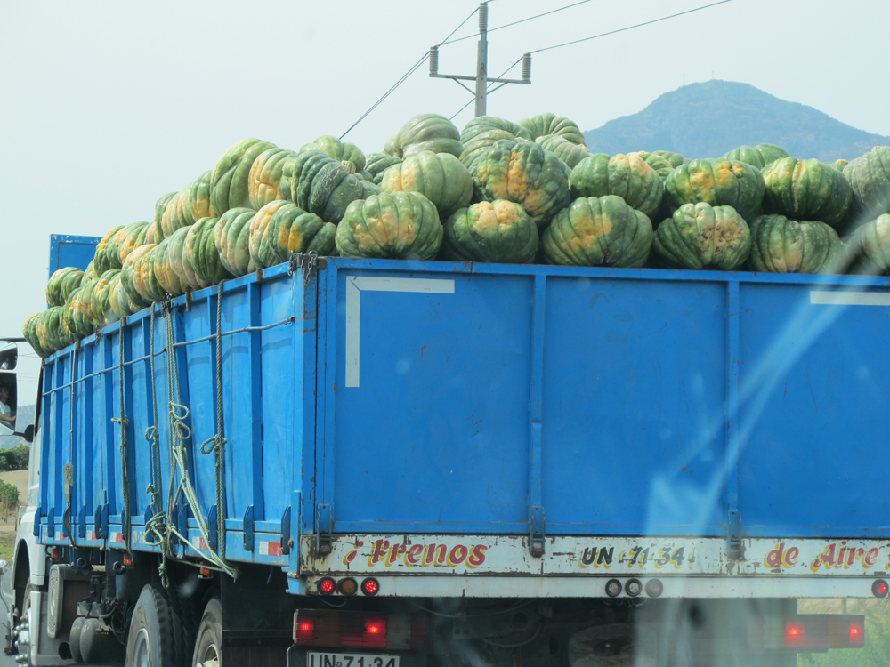 Машина с тыквами. Тыквы огромные, и кажется, никак не закреплены!