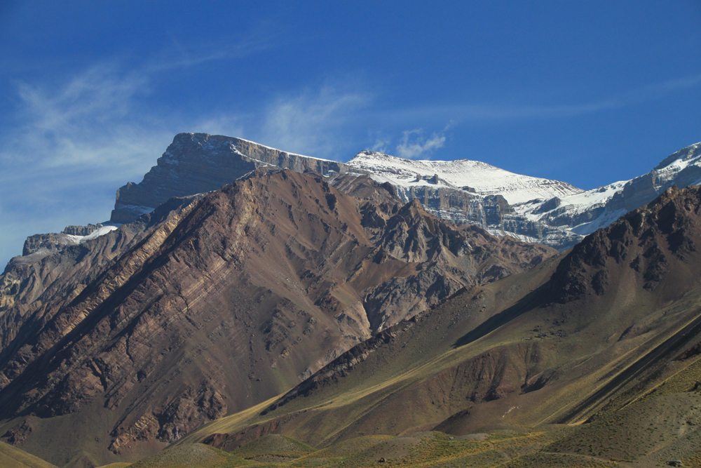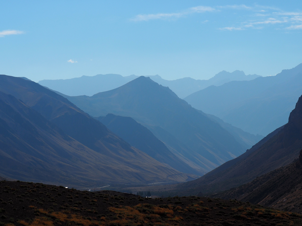 После завтрака мы поехали обратно в сторону границы, чтобы посмотреть на Аконкагуа. Пик находится на территории Аргентины, в 15 км от границы с Чили. Но погранпереход построили еще дальше от границы, в 17 км. Потому что все-таки высота. Так что мы объяснили погранцам, что выезжать не собираемся, и нас легко пропустили.