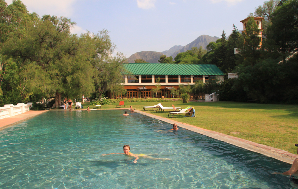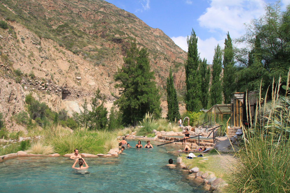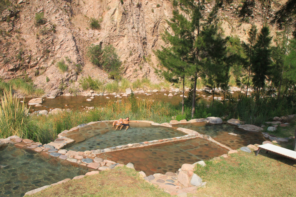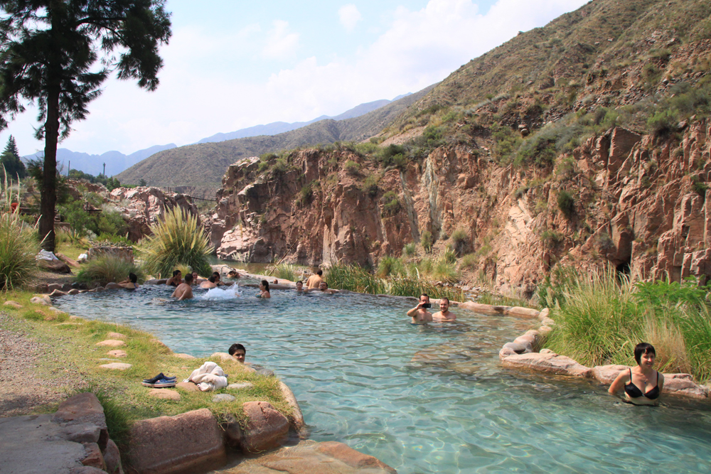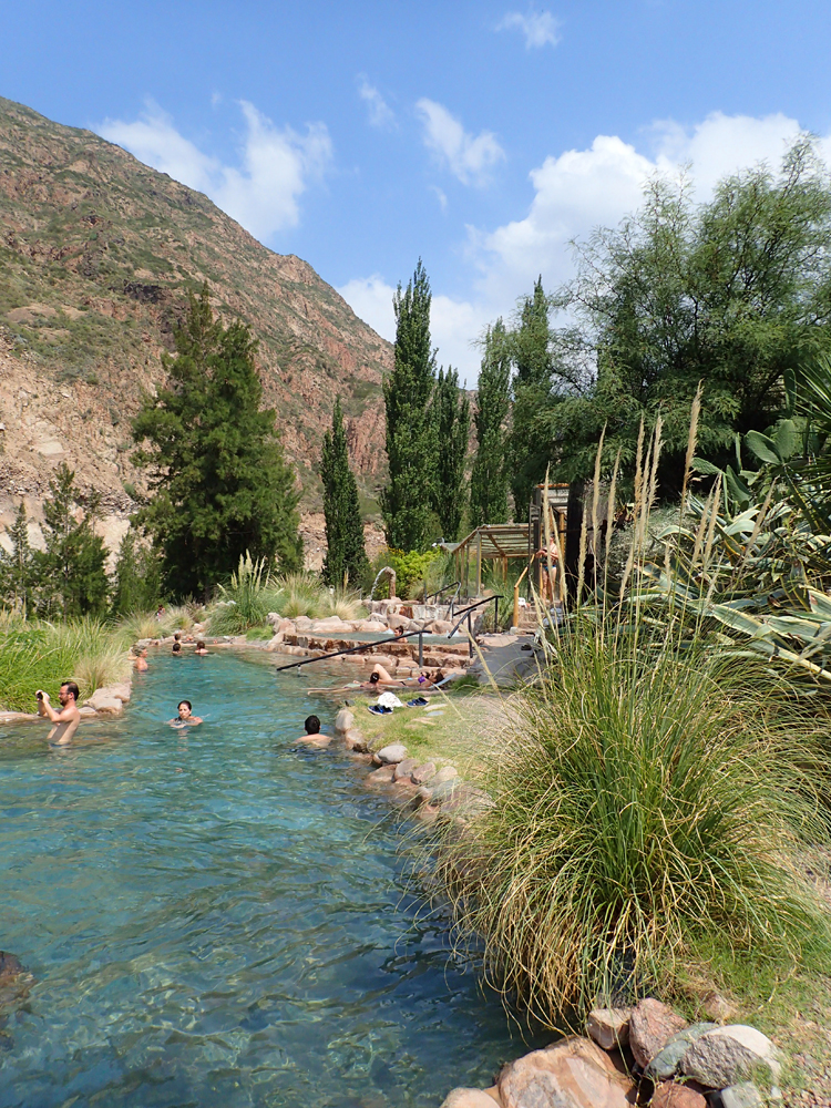 Рядом были какие-то народные горячие источники с огромной толпой в окрестностях. А мы поехали к термам Cacheuta (55 usd с человека). В стоимость включен большой обед типа шведский стол.