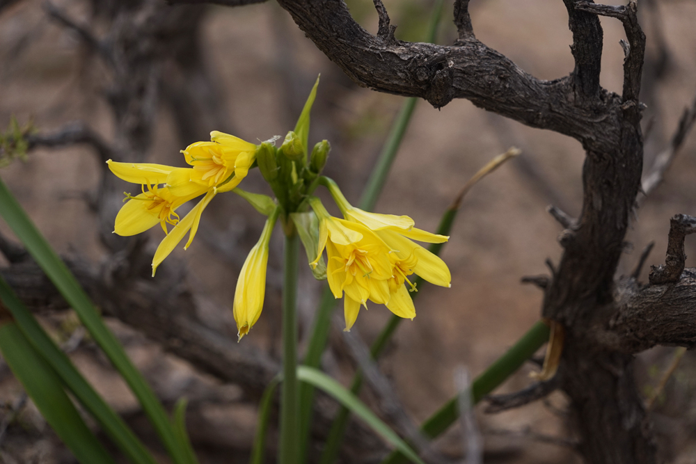 Между ними растут цветы, похожие на нарциссы.