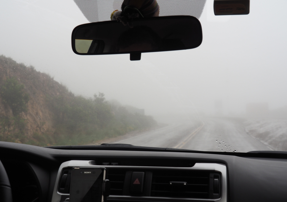 Как только мы подъехали к перевалу, начался дождь и туман.