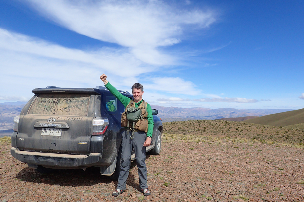 Ран под плакат с нами вставать отказался. Однако день спустя на высоте 4300 мы его все-таки подловили.