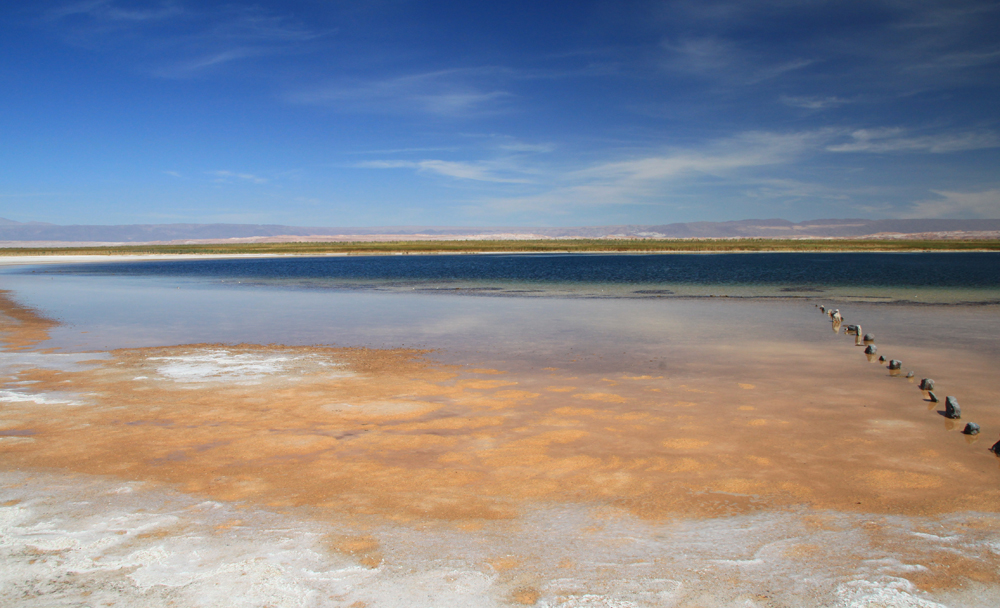 Первая остановка — лагуны Cejar и Piedra. От города это 28 км по асфальту, вход к обеим стоит 10000 чилийских песо с человека. Про лагуну Сехар мне совершенно нечего сказать, она никакая и близко к ней не пускают. Даже фотографировать не стали.