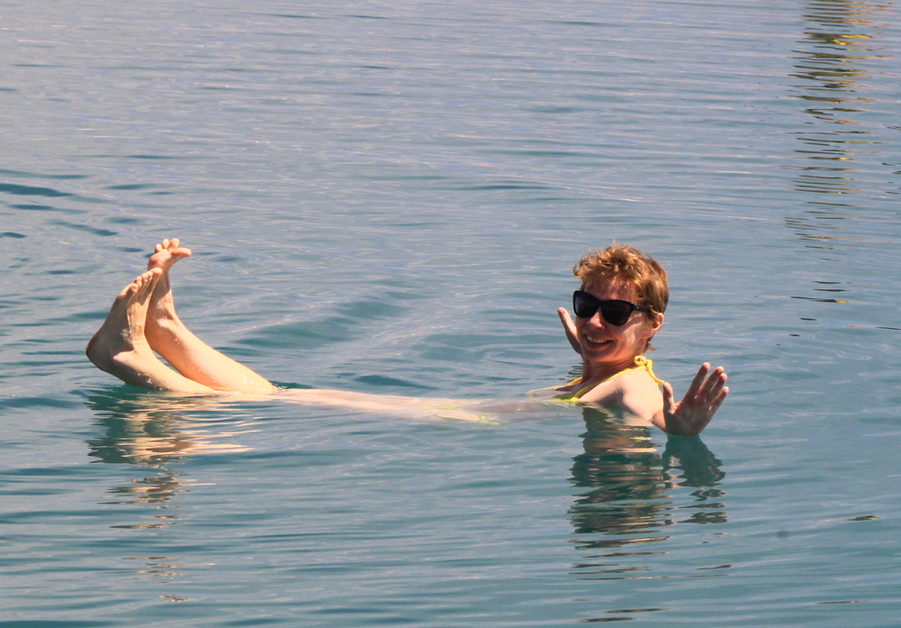 Для тех, кто не был на Мертвом море, это новые ощущения. Вода сама выталкивает наружу, уметь плавать не надо. Главное — лицо не окунать в воду и не переворачиваться. Температура воды купабельная, но не очень теплая (+19–+20 примерно).